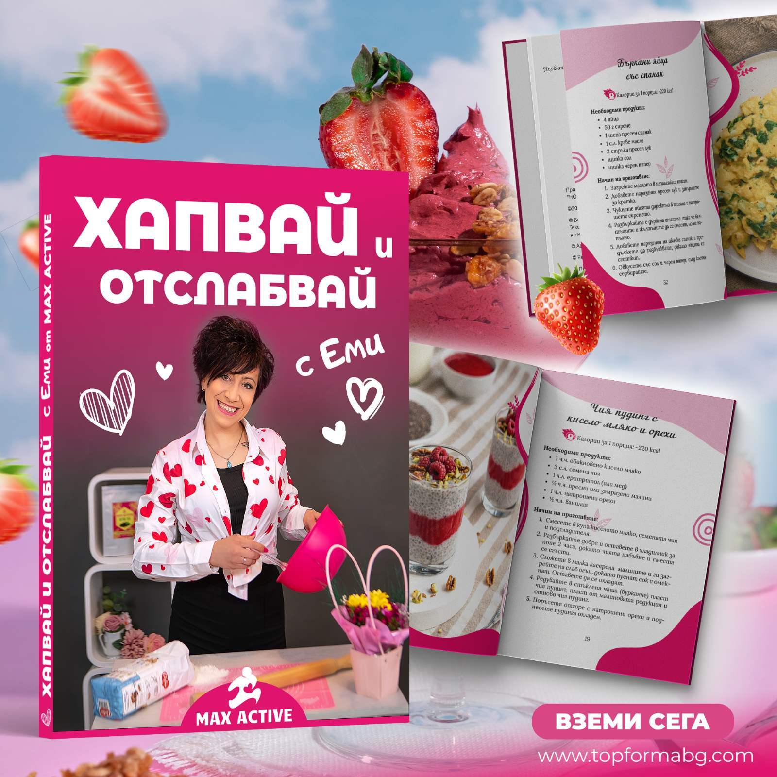 „Хапвай и отслабвай с Еми" не е просто готварска книга. Това е твоят нов начин на живот — вкусен, лесен и полезен. Повече от 100 рецепти, които ще те накарат да се влюбиш в храненето отново — без глад, без жертви, само резултати.